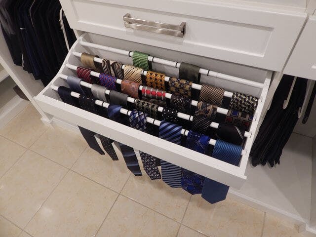 If you have an abundance of ties in your household and can’t figure out how to neatly organize and store them, the following functional custom closet accessories are just what you need.