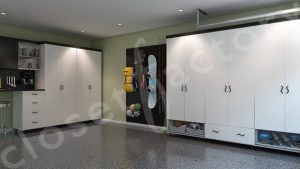 Putting a few generic cabinets and racks into a garage may help you add some additional storage. But, it’s a long way away from creating that special sanctuary just for him. Luckily at Closet Factory everything we do is custom and specifically designed for how and where you want to store your items. Our designer will discuss with you how you currently use the garage, and what you envision for the man cave transformation. We make sure you will get maximum use of the space through custom cabinets, storage and accessories to turn a plain garage into the ultimate man cave! This is the perfect win-win garage storage solution so the man of the house will quickly agree to the purchase!
