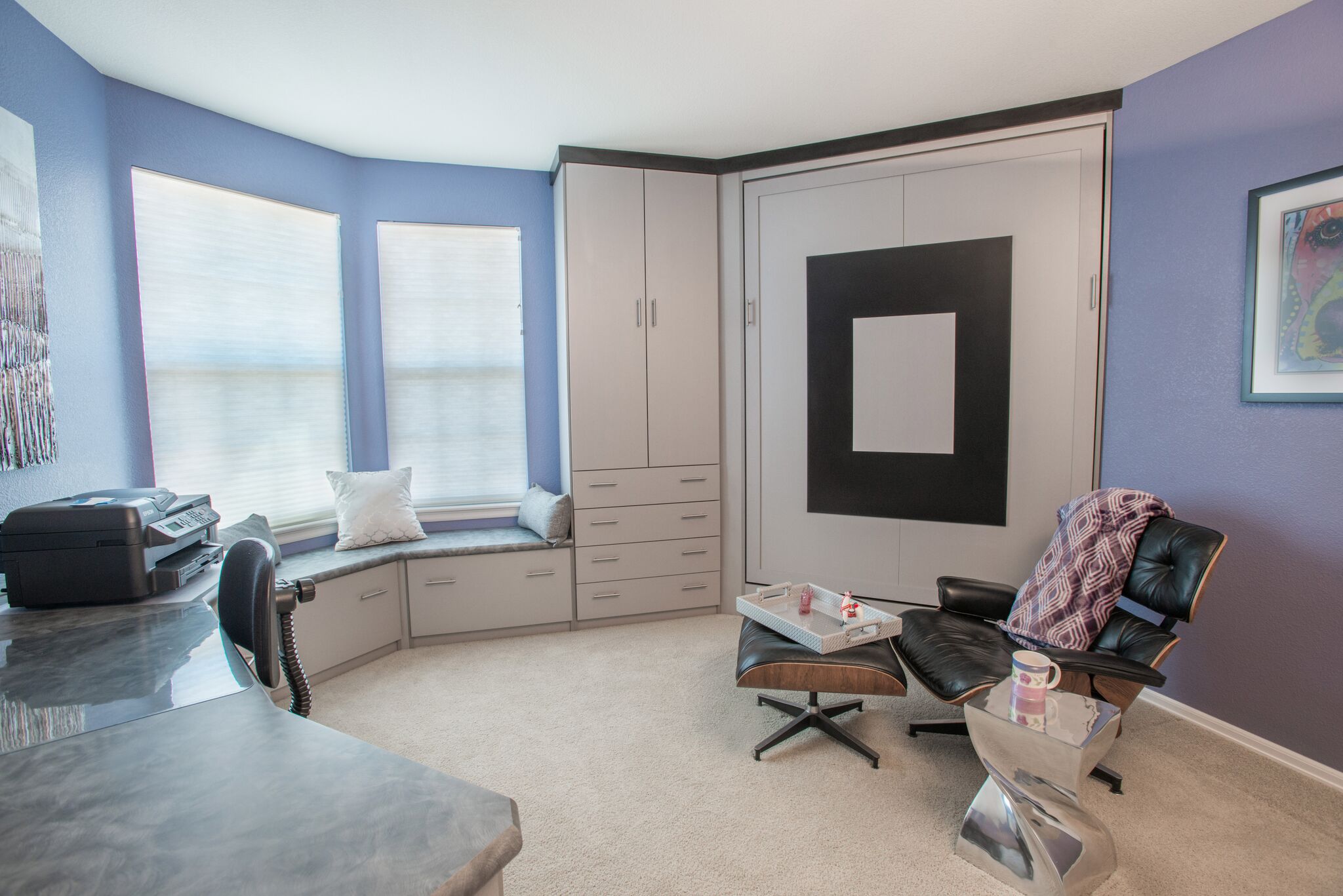 For example, one of our Denver Closet Factory designers, Patrick B. Hayes, created a multipurpose, flex space inside a room that had six different walls. The customer had a spare bedroom that had six walls including one wall that jutted in about 18-inches and two long windows that created a bay-window effect. It was a really challenging space to say the least, but it turned out beautifully,” Patrick B. Hayes, Designer
