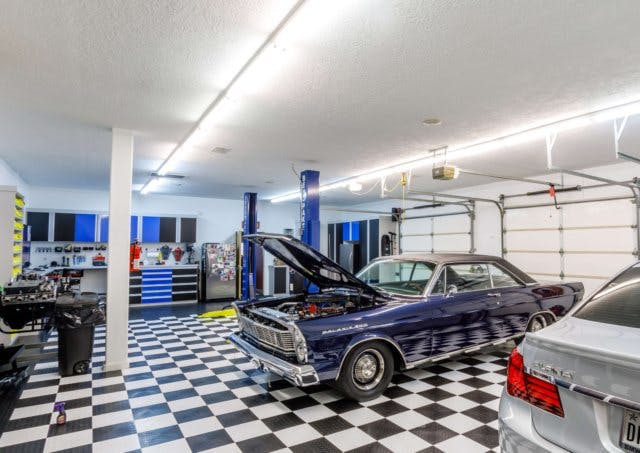 “My clients, Lonnie and Beth Wright, were interested in transforming both of their garages to accommodate and work on their classic car collection,” says designer Julie Green.