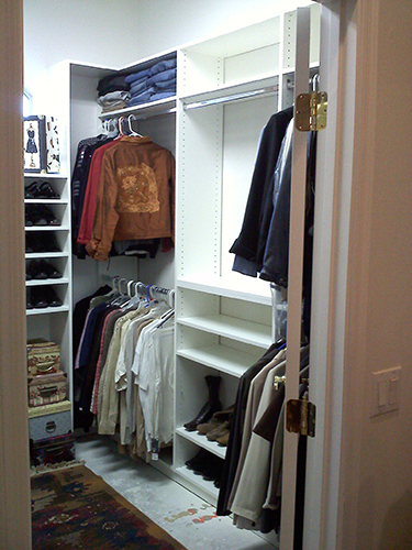 At arrival our designer Becky had to move things around the room just to get into the closet, however, after a quick inventory and assessment Becky was able to come up with closet design solution that was simple and highly effective that utilized all the space available.
