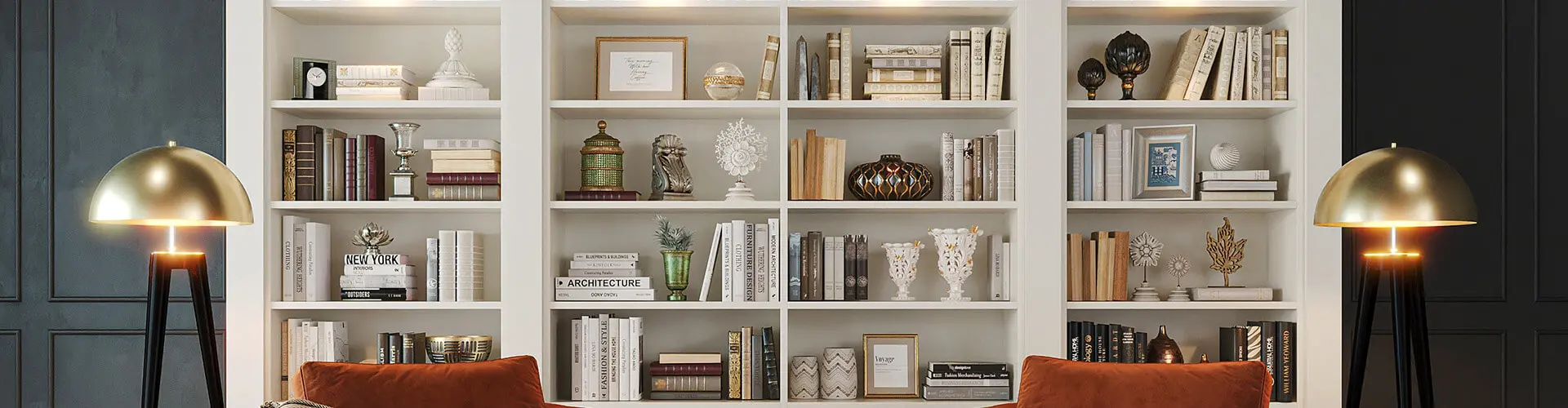 With 3D software, curated finishes, and sample accessories, we’ll create a shelving system that accommodates your books, collectibles, and personal style.