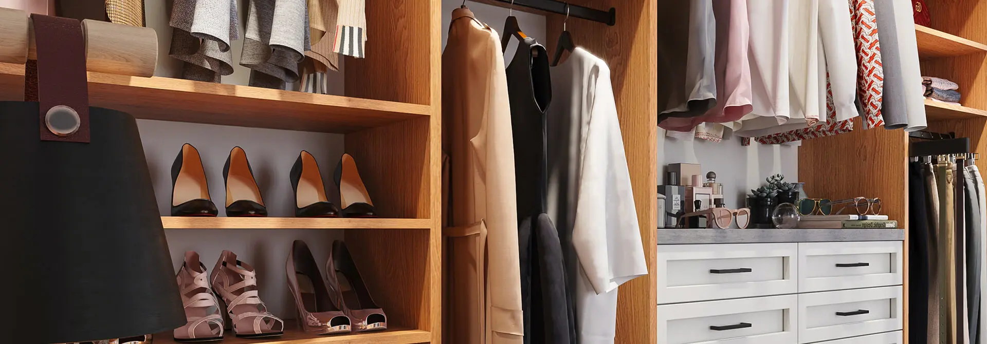 We offer one of the largest selections of materials, finishes, and accessories in the industry including melamine, MDF, wood, and hybrid systems, giving you the freedom to create a solution that truly reflects your home and lifestyle. Whether you prefer a sleek modern design or classic wood detailing, we’ll help you explore the possibilities and bring your vision to life.