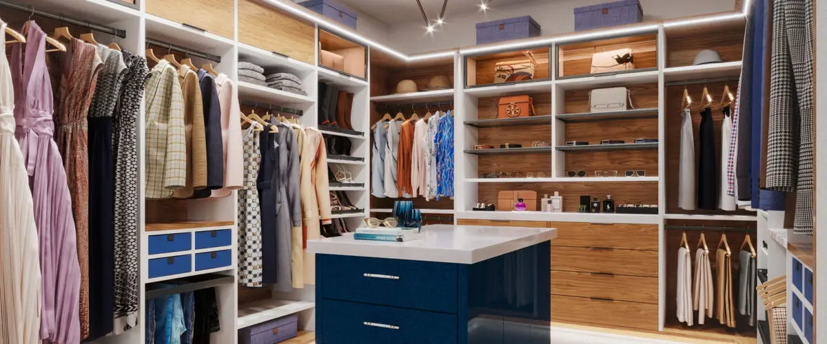 - Custom closet designs created around your organizational needs, storage preferences, and budgetary requirements